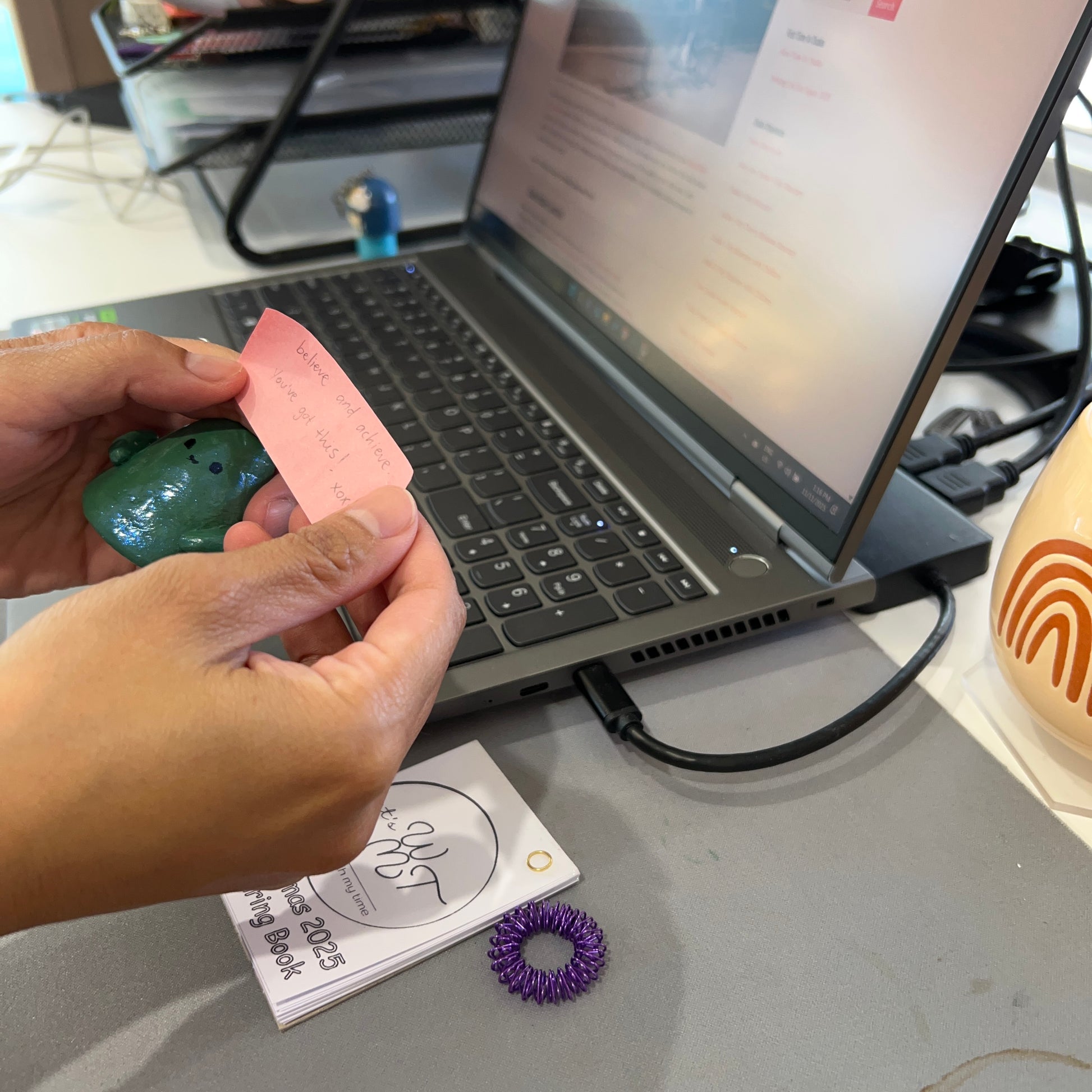 A simple reminder to pause, breathe, and stay creative — right on your desk.